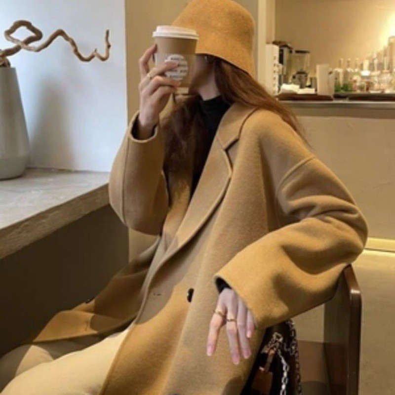 高级感双面羊绒纯羊毛大衣女2023秋冬新款韩版宽松中长款外套女装