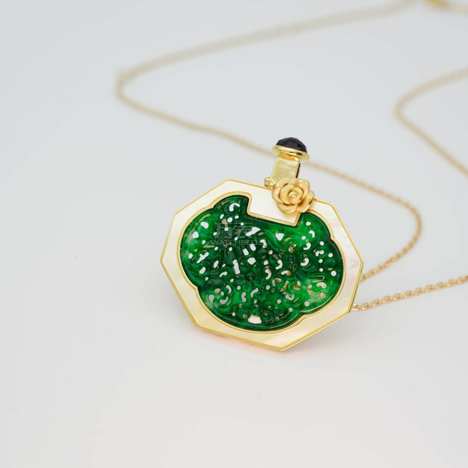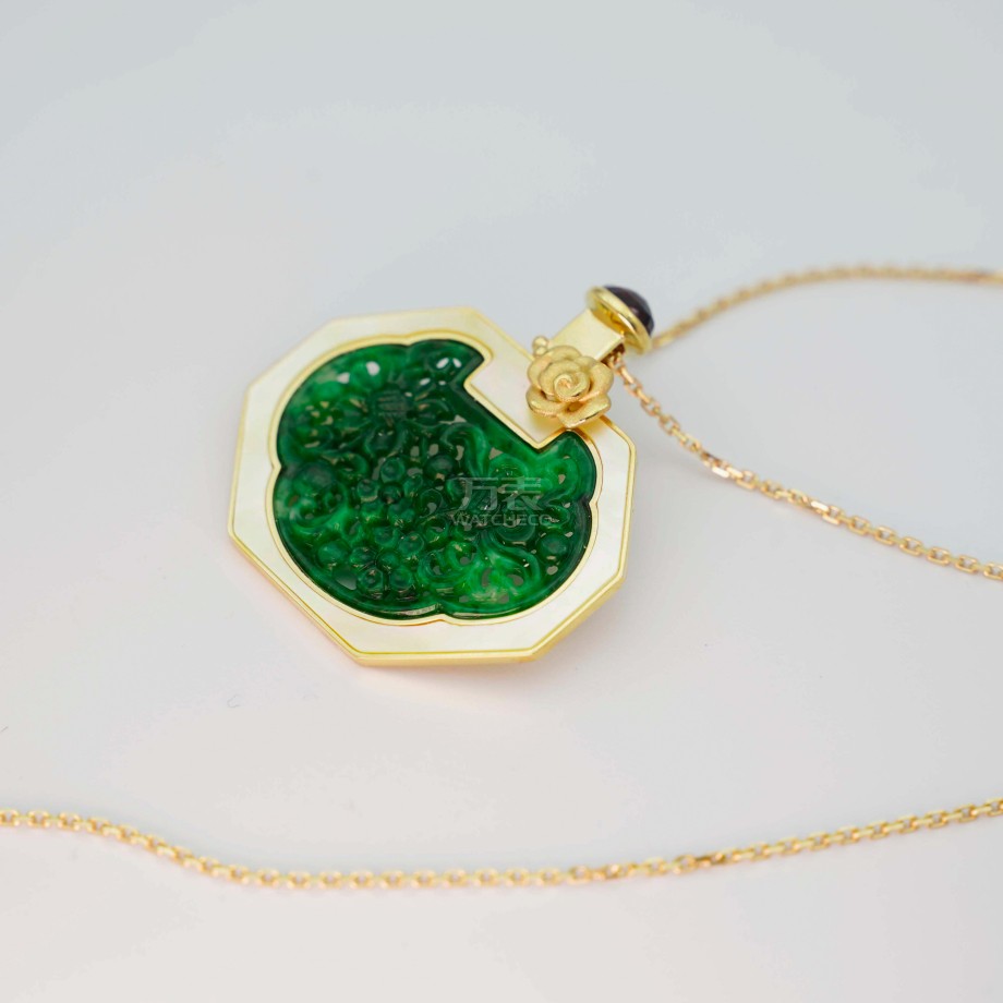 如意宝瓶•锦绣(大)>G18K翡翠项链 P11202261